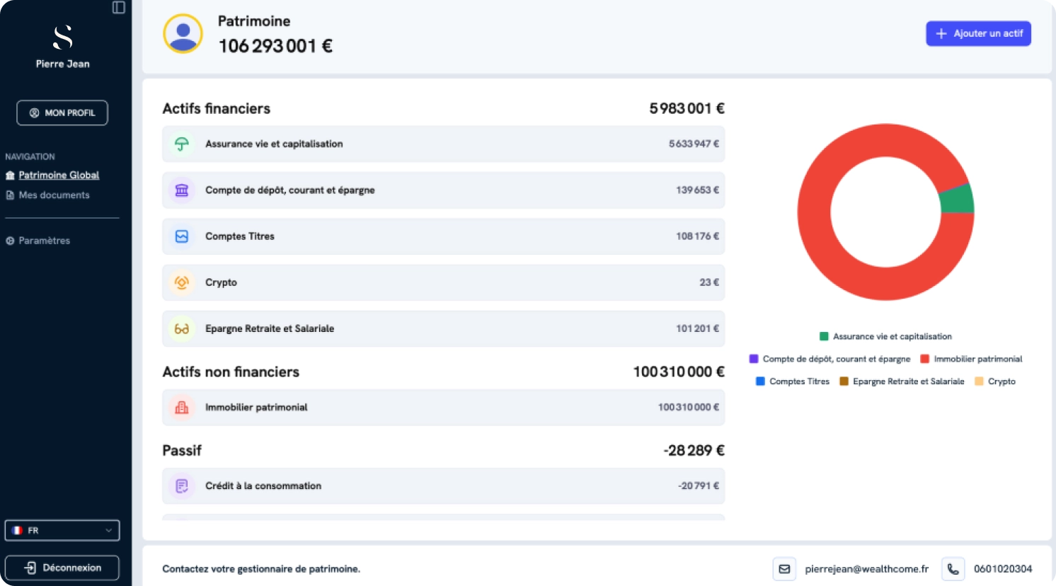 Accédez à l’ensemble de votre patrimoine en un seul endroit. Vos comptes, placements et actifs réunis dans une interface claire et sécurisée, pour suivre votre situation en temps réel.