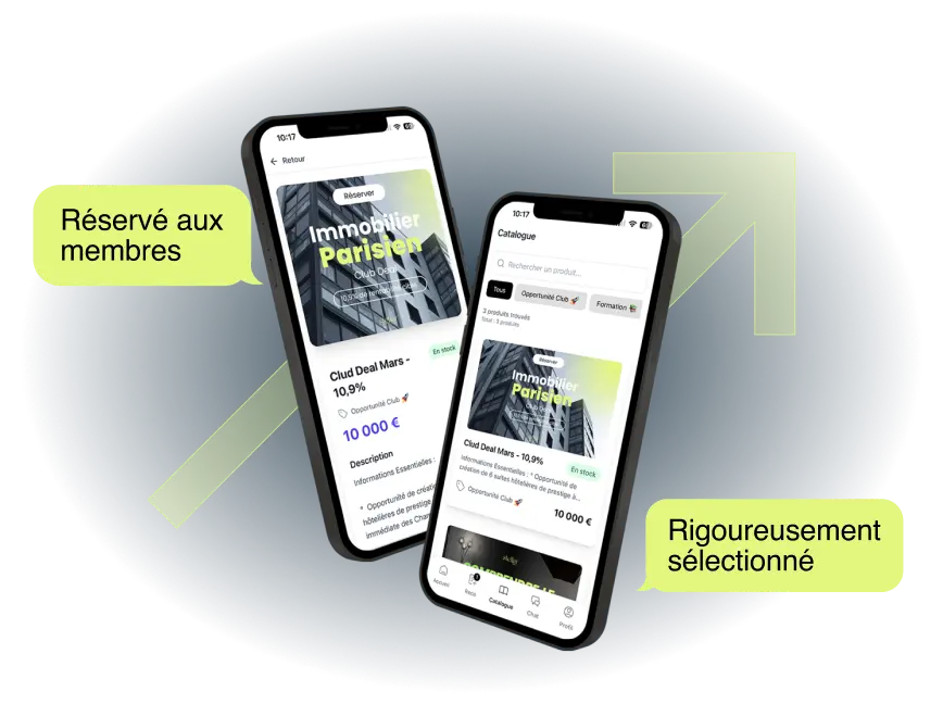 Accédez à un catalogue d’opportunités off-market rigoureusement sélectionnées, exclusivement réservé aux membres du Club.